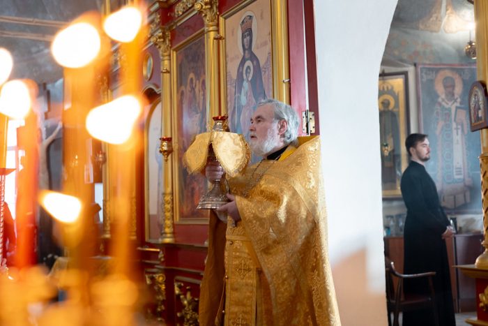Во время вечернего богослужения произошло видимое изменение, которое знаменует начало особого времени церковного года: по уставу были сменены богослужебные облачения — с праздничных золотых на чёрные. Этот момент символически обозначает переход от подготовительных недель к вступлению в Великий пост.